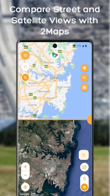 • Compare street / satellite view: Display street and satellite views simultaneously for the same or different locations, offering a multifaceted understanding of any area