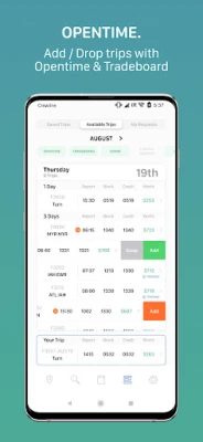 Crewline makes it very easy to see open time and trade board. It sorts them by the total available trips per day and you see them right on your calendar. Tap on them and you’ll be presented with an organized list of trips that are already sorted for you.