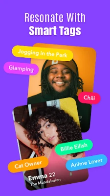 Duet's Smart Tag digs deeper than superficial similarities, covering your interests, traits, opinions, and habits. This multifaceted self-description enhances connections and guarantees a match based on an in-depth understanding of each person.