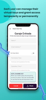 • Share access instantly: send temporary or permanent permissions to family, friends, or employees.