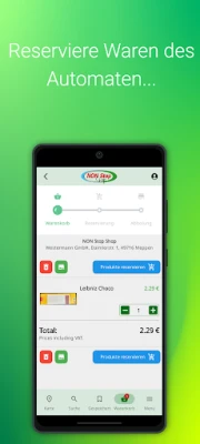 Mithilfe der NON Stop Shop App findest du jeden NON Stop Shop im Verkaufsautomaten-Netzwerk. Sieh dir den Inhalt der Verkaufsautomaten an und merke dir Waren zum späteren Kauf vor. Mithilfe der App findest du immer genau den NON Stop Shop, dessen Angebot du gerade benötigst. Zu jeder Tages- und Nachtzeit.