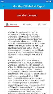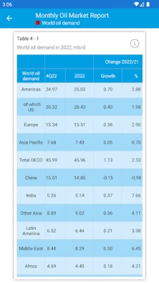 The MOMR app will provide you with the essential information on the oil market. It is updated every month and it contains more than 100 interactive articles and tables