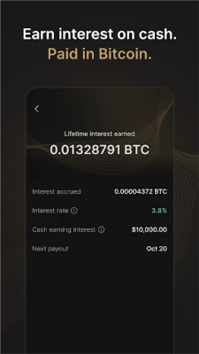Your cash should work for you. Earn interest on cash deposits, with interest that can be paid in Bitcoin. It’s simple, no lock-up period, no monthly fees.